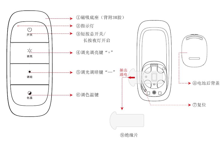 膨胀螺栓*4;十字头螺钉*2;接线帽*3;遥控器*1(遥控版本);灯体*1